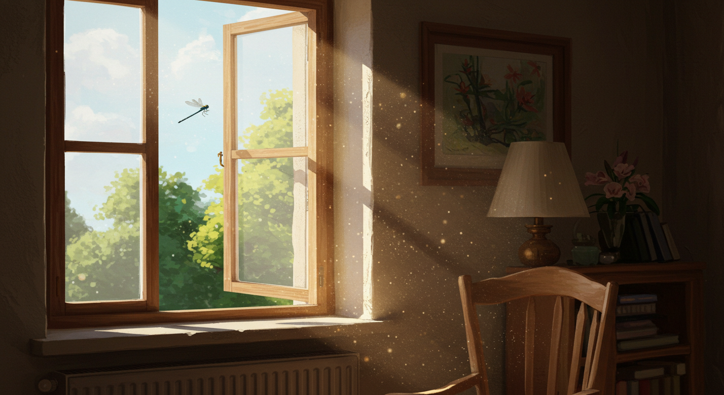'방'은 나의 개인적인 공간과 내면세계를 상징해요. 그곳으로 '잠자리(기쁜 소식, 새로운 가능성)'가 들어온다는 것은, 자신의 삶에 긍정적인 변화와 새로운 활력소를 받아들일 준비가 되었음을 의미합니다.