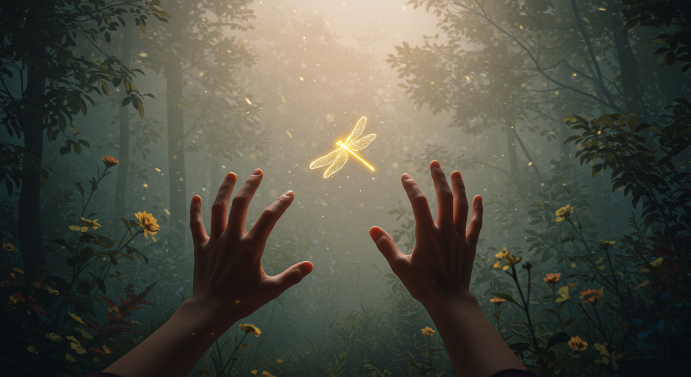 '잠자리'는 손에 잡힐 듯 잡히지 않는 '기회'나 '영감'을 상징해요. 그것을 잡았다는 것은, 마침내 추상적인 아이디어나 기회를 현실적인 성과로 만들어낼 준비가 되었음을 의미합니다. 정말... 창의력과 실행력이 최고조에 달한 상태죠.